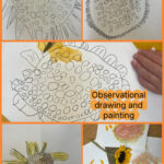class 2 observational drawing and painting of sunflowers today. Lots of detail and concentration and beautiful artwork. 🌻